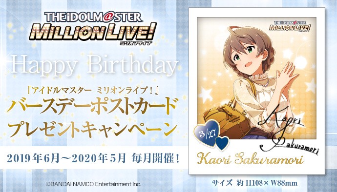 「アイドルマスターミリオンライブ!」バースデーポストカード プレゼントキャンペーン