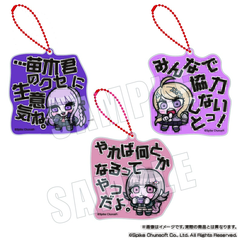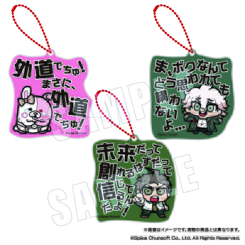 『ダンガンロンパシリーズ』より、大川ぶくぶ先生描き起こしキャラクターのセリフアクリルキーホルダーが登場です!