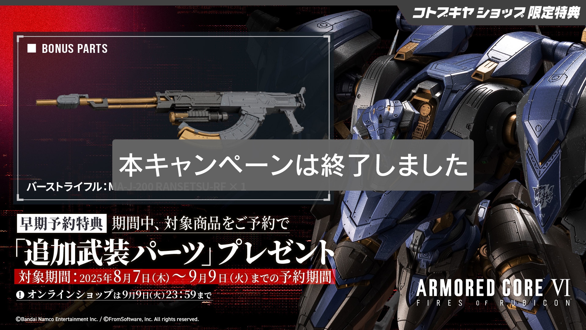 コトブキヤショップ限定 早期予約特典「追加武装パーツ」<対象期間>2025年8月7日(木)11:00 〜 9月9日(火)23:59