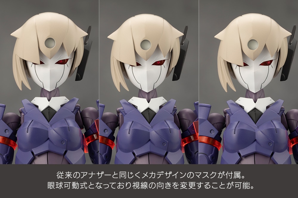 従来のアナザーと同じくメカデザインのマスクが付属。眼球可動式となっており視線の向きを変更することができます。もちろん創彩少女庭園のキャラクターへ取り付け可能。