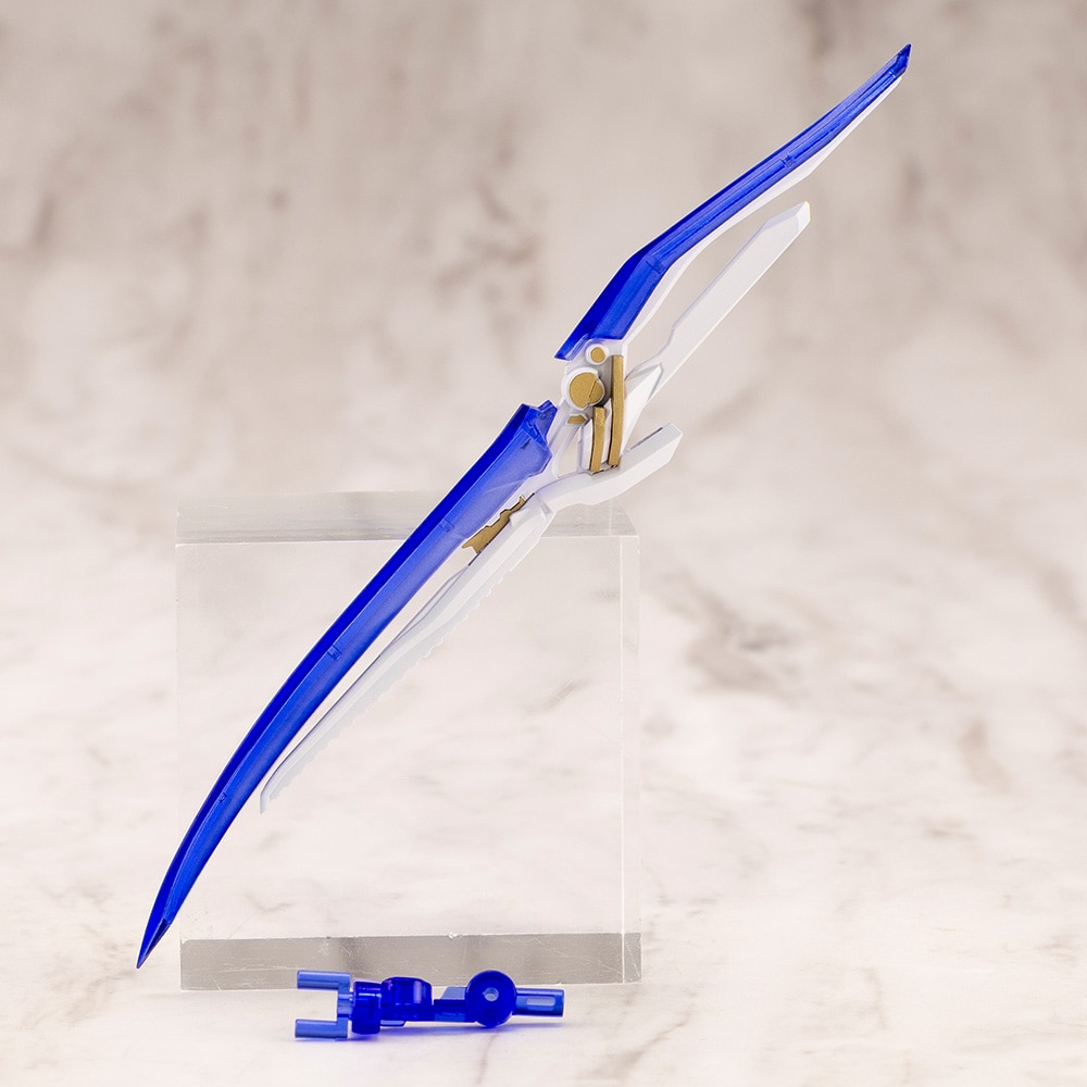■成型色は刀身部分・可動懸架アームがクリアーブルー、フレーム部分はツヤありのホワイトの2色成型となっております。