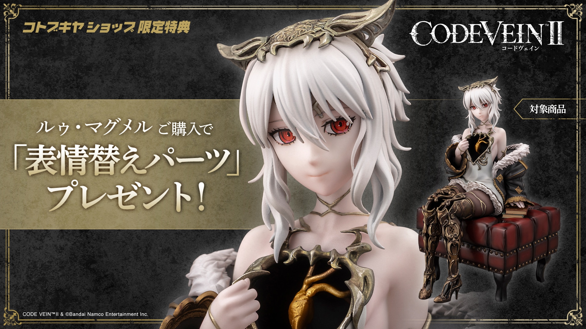 コトブキヤショップ限定特典「表情替えパーツ」※ご予約いただいた方には、必ず特典をお付けいたします。※特典付アイコンや限定特典の表記が商品ページから無くなりますと、配布終了となりますのでご注意ください。※コトブキヤショップ購入特典は、商品の再生産時や海外販売および、イベントや臨時出店等の企画により、直営ショップ以外で付属、配布させていただく場合がございます。