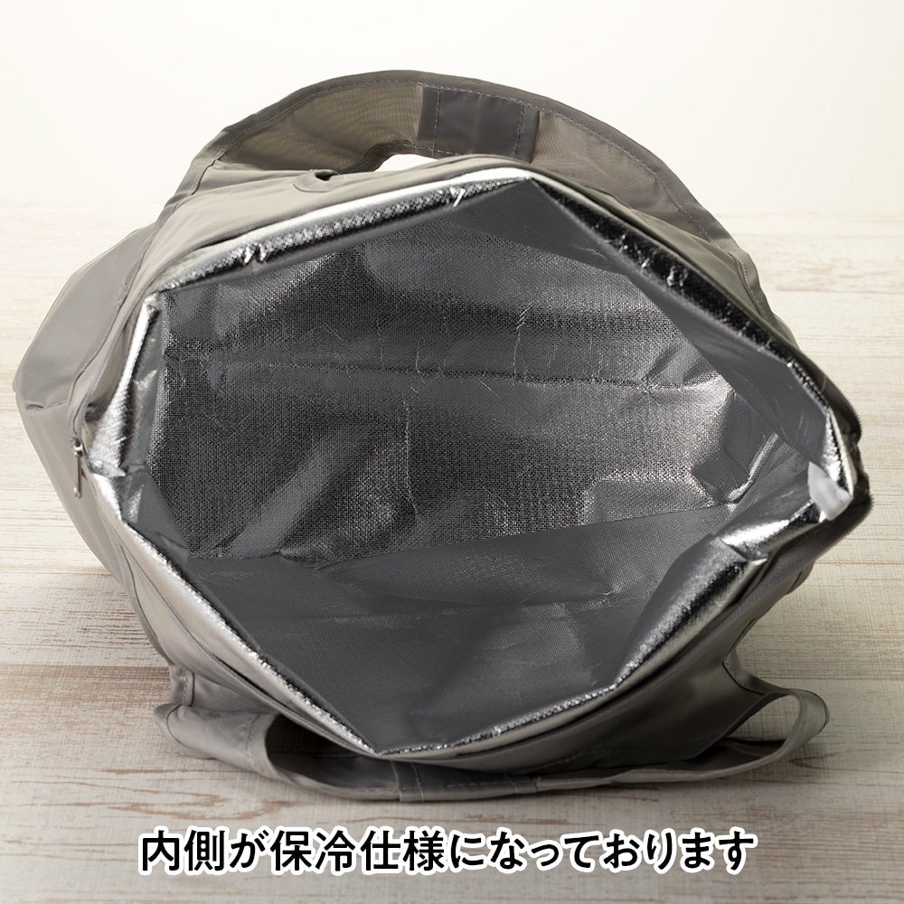 2Lペットボトルが3本入る充分な容量と、ファスナー付きでしっかりと荷物を収納できるのも安心。
