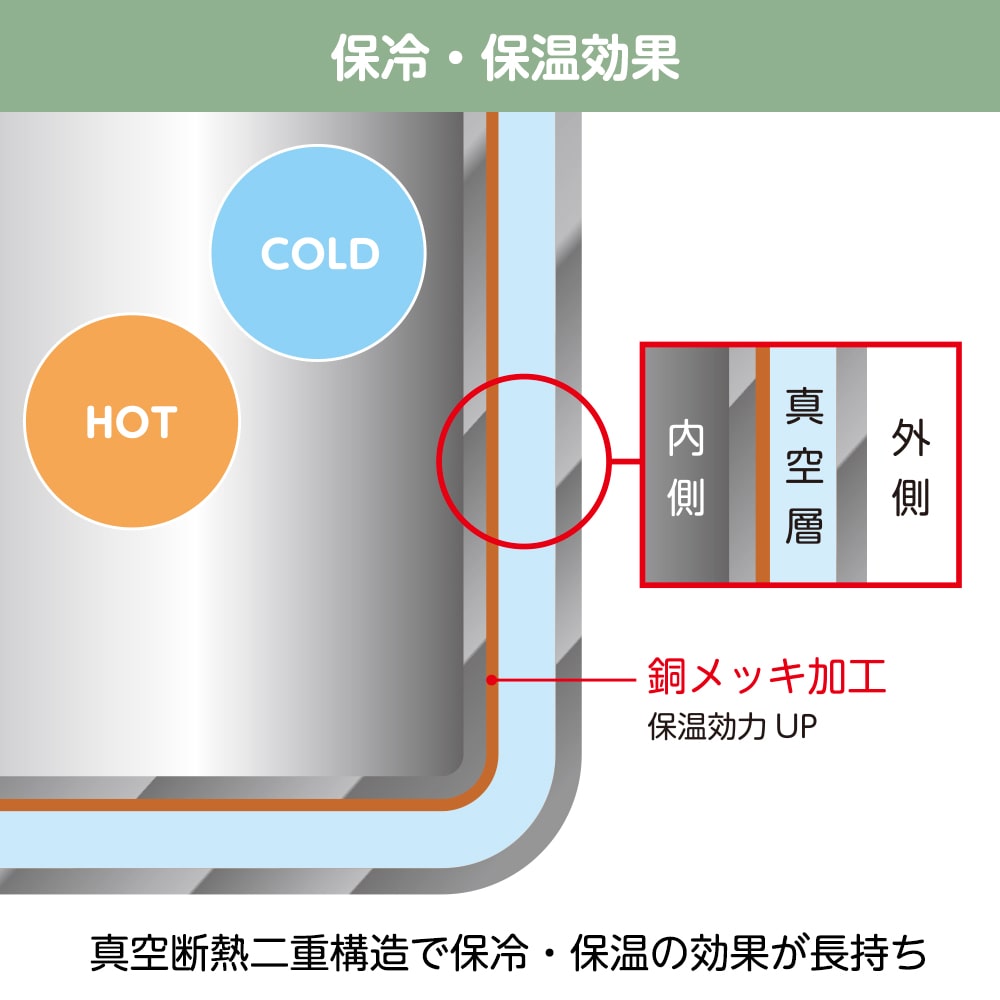 保冷・保温どちらにも対応していますので、夏の暑い時期や冬の寒い日はもちろん、年中お役に立てるアイテムです。