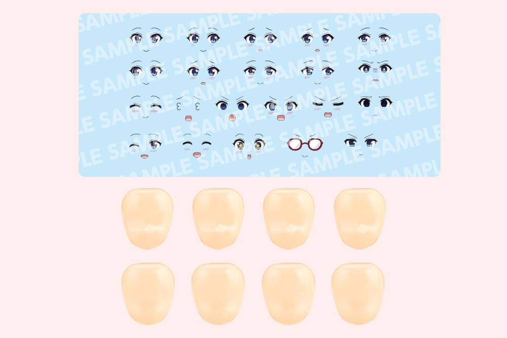 合計8個の表情パーツが制作可能!「呆れ顔」「虚無顔」「すごいおどろき顔」「ときめき顔」などなど