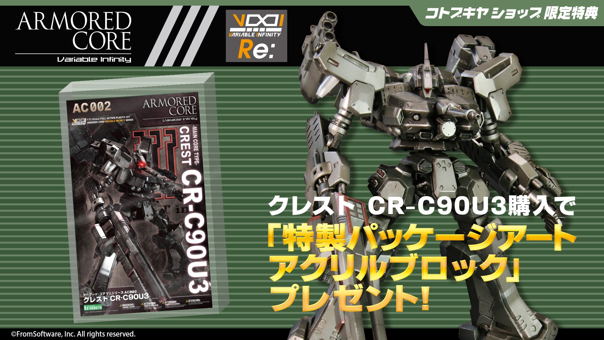 コトブキヤショップ限定特典「特製パッケージアートアクリルブロック」※ご予約いただいた方には、必ず特典をお付けいたします。※特典付アイコンや限定特典の表記が商品ページから無くなりますと、配布終了となりますのでご注意ください。※コトブキヤショップ購入特典は、商品の再生産時や海外販売および、イベントや臨時出店等の企画により、直営ショップ以外で付属、配布させていただく場合がございます。