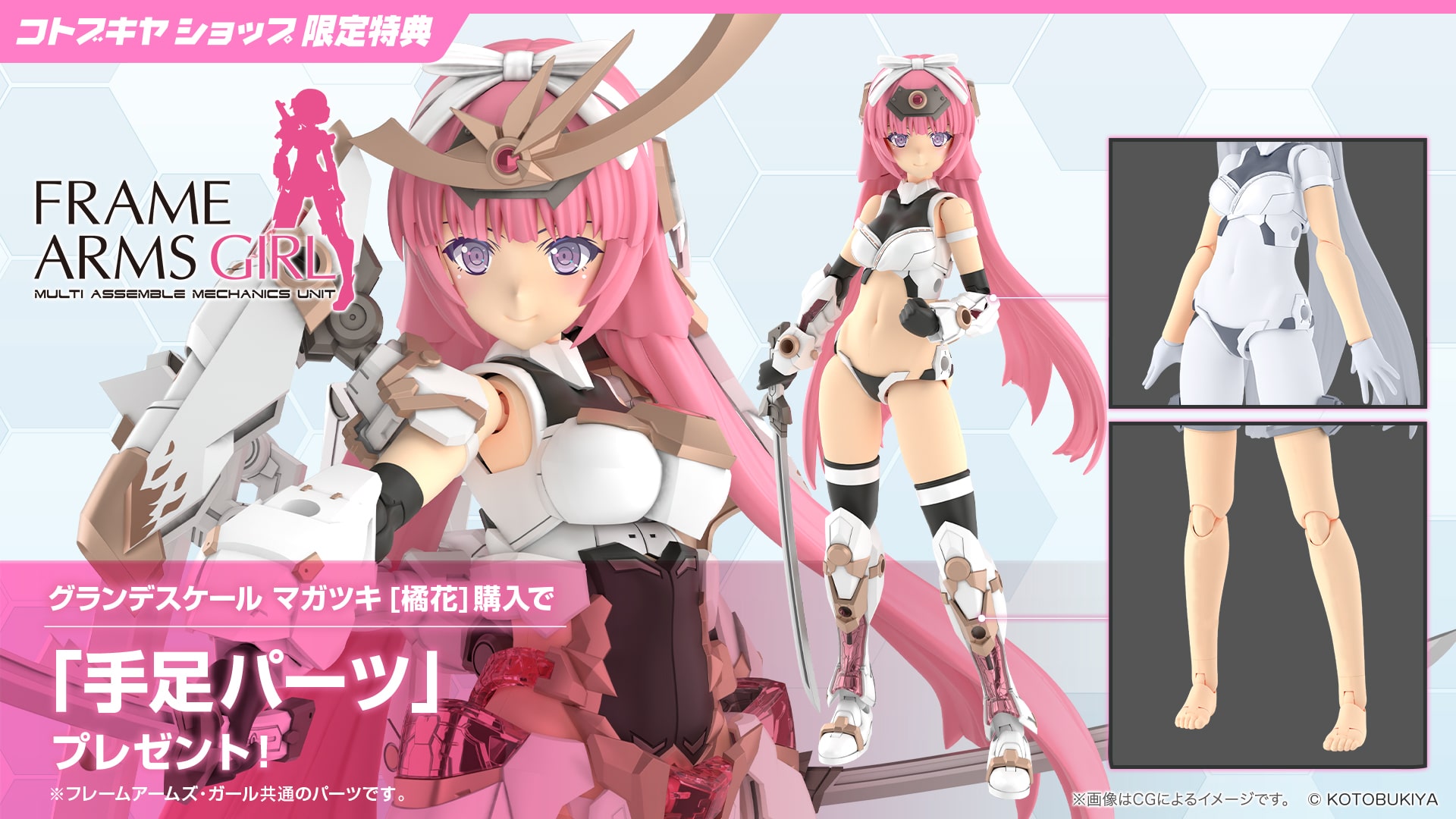 ・PVC製の手首が左右それぞれ5種付属。手首は関節を含め、既存のフレームアームズ・ガール グランデスケールシリーズの手首と組換えが可能です。